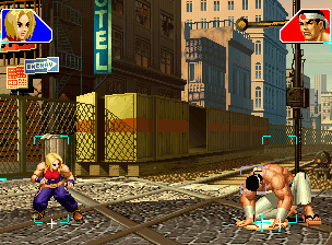 地震バグに対し、起き上がりにしゃがみガードを しようとしているマリーの図。以下、縦に続く。 ↓ |